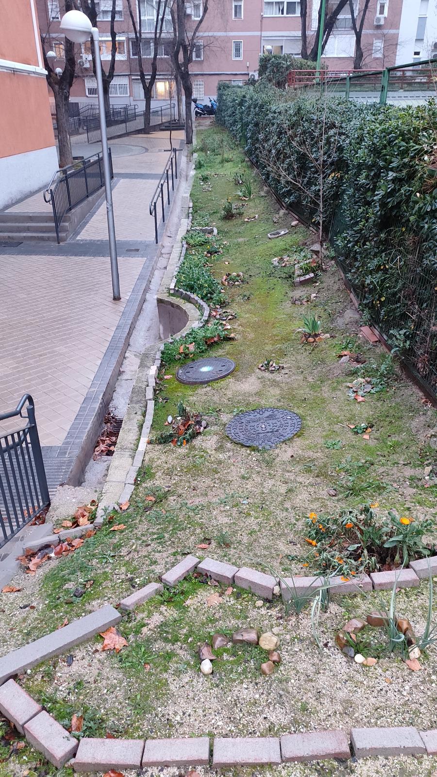 Un año y medio más tarde, Ámparo y el suelo del parterre decidieron entrar en simbiosos. Ella lo limpió de escombros y vegetación marchita, él abrió poco a poco sus poros saturados y se sometió con confianza a un proceso de cambio: alcorques circulares de piedra para cobjiar plantas coloridas, duchas de agua pulverizada cuando el calor apretaba, aportes de tierra para mejorar su estructura.
